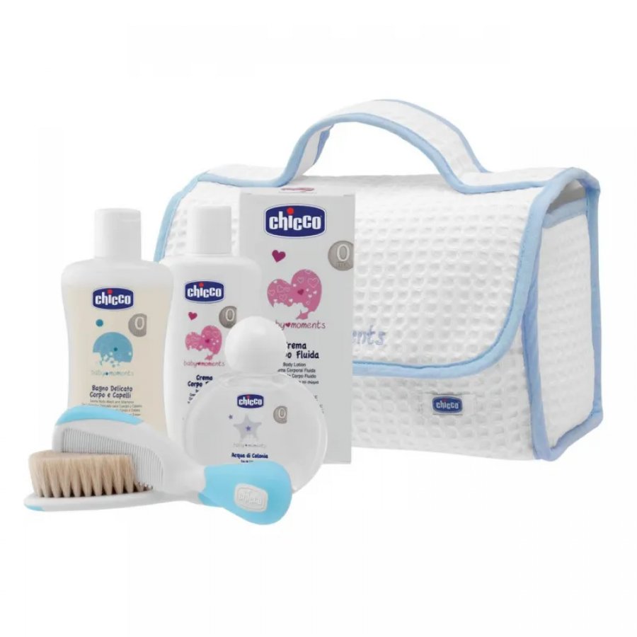 CHICCO BABY MOMENTS BEAUTY MANIGLIA AZZURRO BAGNO DELICATO CORPO-CAPELLI PELLI DELICATE 200 ML + CREMA CORPO PELLI DELICATE 200ML + ACQUA DI COLONIA BABY SMELL PELLI DELICATE 100ML